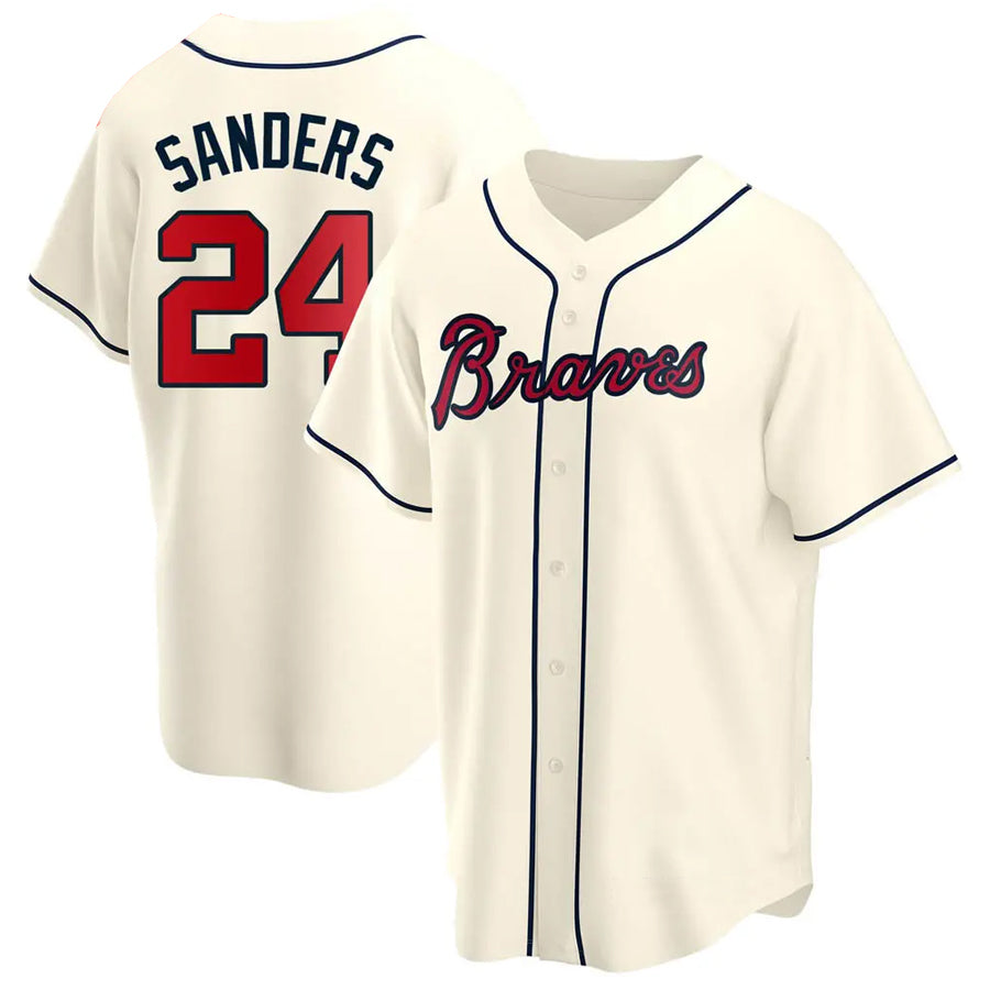 A.Braves #24 Deion Sanders Player Cream Replica Game Baseball Jerseys