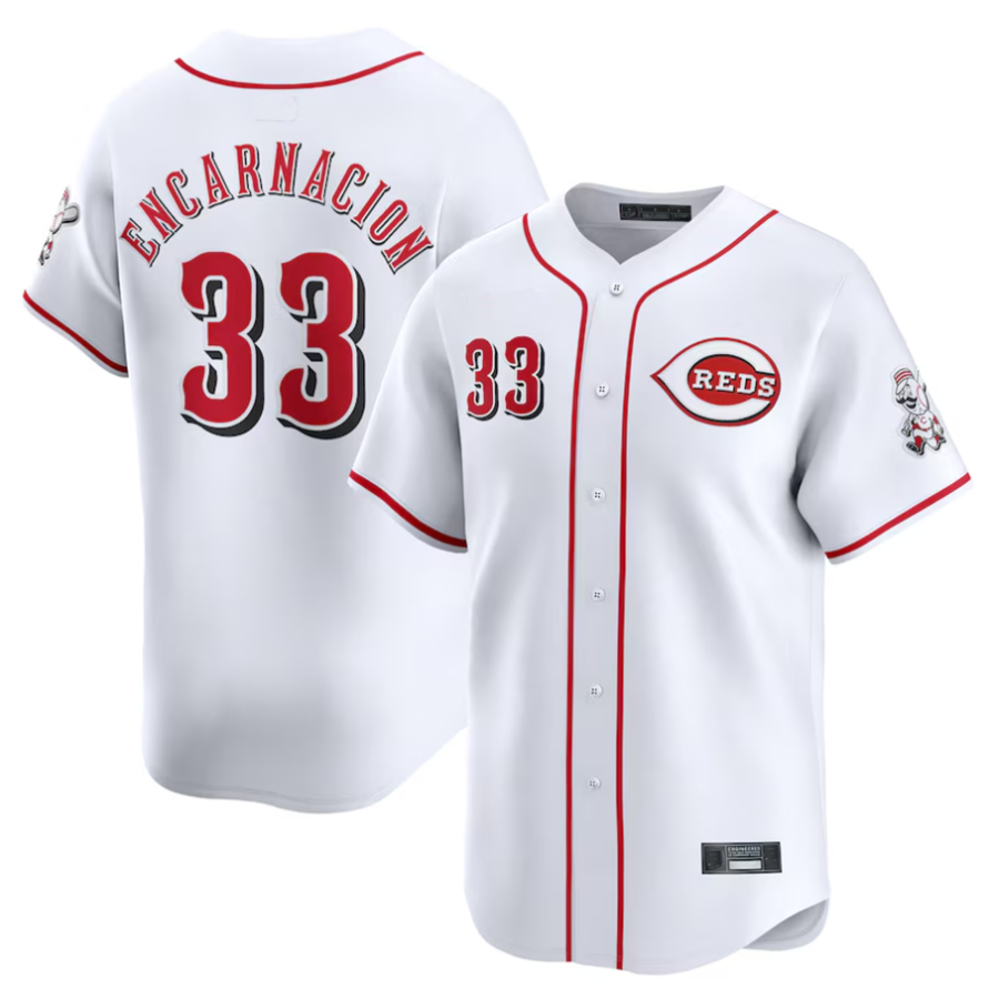 Show off your love for C.Reds with the #33 Christian Encarnacion-Strand Player White Home Replica Baseball Jersey. This jersey not only features the iconic C.Reds logo, but also the player's number and name. Show your support for the team while looking stylish and representing your favorite player.